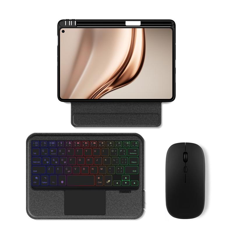 Enhance your Huawei MatePad Mini with the Bluetooth keyboard case, a multifunctional 2-in-1 accessory that combines protection, productivity, and style. Crafted from premium polyrethane, this sleek case provides full protection against scratches, shocks, and fingerprints while maintaining a professional look. The detachable Bluetooth keyboard connects wirelessly for smooth, responsive typing, while the integrated touchpad supports multi-gesture control for effortless navigation. Featuring a backlit keyboard, you can type comfortably even in low-light environments. The built-in adjustable stand offers an ergonomic viewing angle, making it perfect for typing, streaming, or reading. Designed for business, travel, or everyday use, this keyboard case transforms your tablet into a portable workstation.