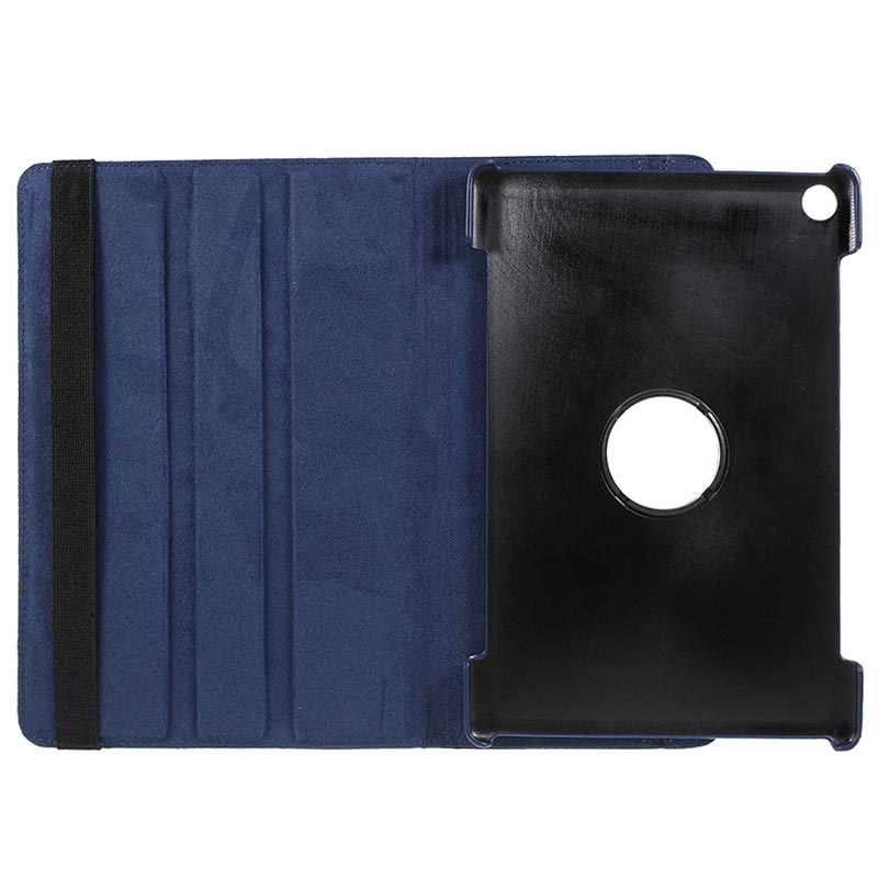 - Rotary tablet case also has an elastic band and inner microfiber lining