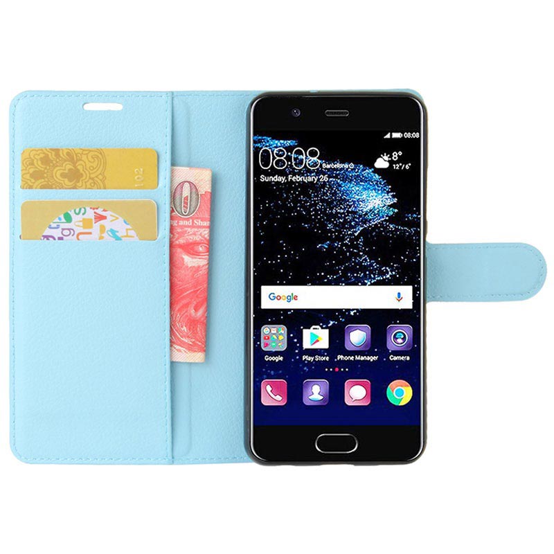 Textured wallet case for Huawei P10 will keep your device, cash and cards safe and secured. The back folds into stand for easier media viewing or internet surfing. Magnetic closure keeps everything securely in place.