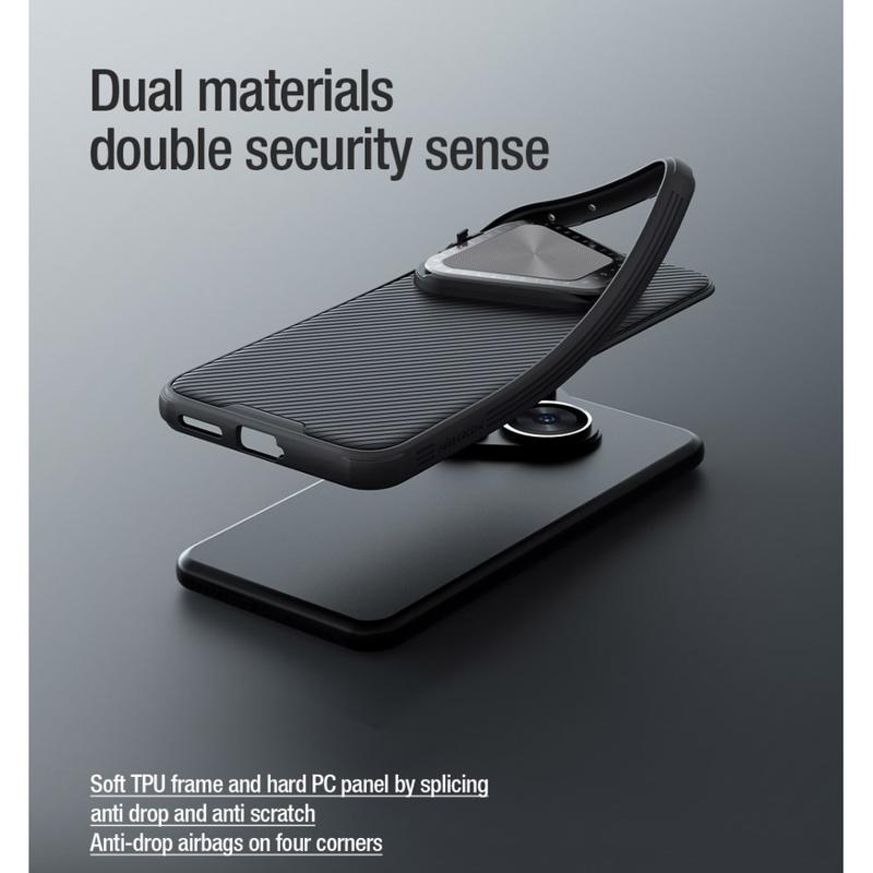- This extraordinary Nillkin CamShield Prop hybrid case is made of plastic and TPU materials