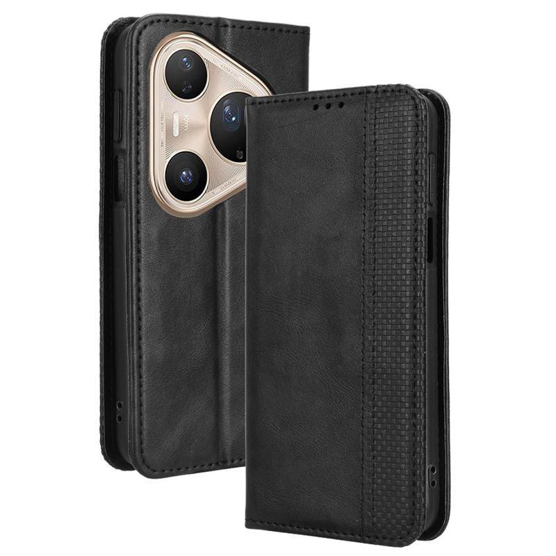 Huawei Pura 80 Pro/80 Pro+ Retro Wallet Case with Magnetic Closure - Black