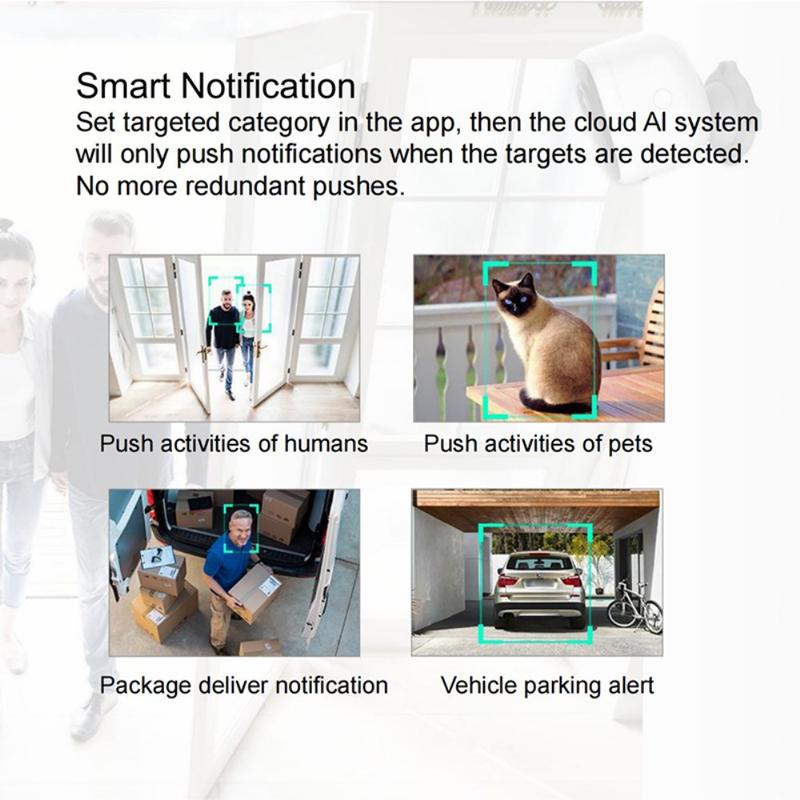 - AI humanoid detection + motion alerts pushed straight to your phone; sensitivity adjustable