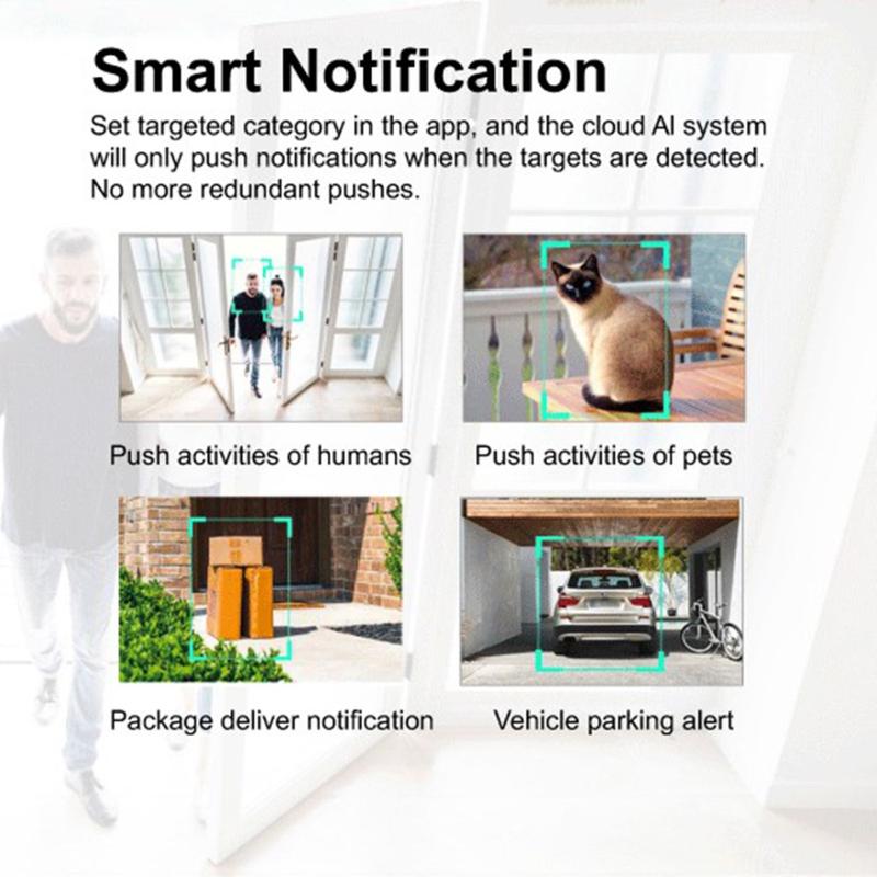 - Smart AI alerts. Human, pet, car, package recognition and an adjustable fence zone keep notifications relevant.