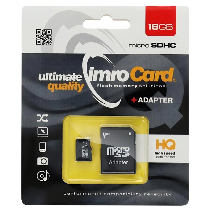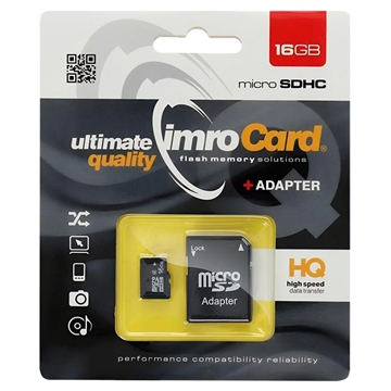 Expand your device storage with the IMRO microSDHC 16GB memory card. Designed for everyday use, it offers reliable performance for smartphones, tablets, cameras, and other compatible devices. With fast read speeds up to 85 MB/s and write speeds up to 43 MB/s, it supports smooth file transfers, photo storage, and Full HD video recording. The included SD adapter allows easy use in devices with a standard SD card slot.