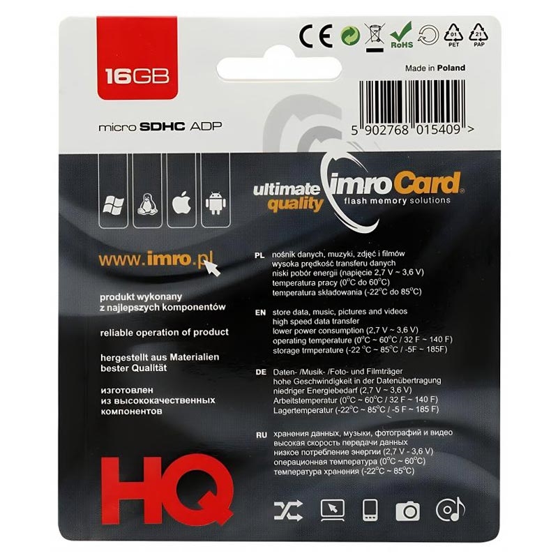 The IMRO 16GB microSDHC card is a practical and affordable solution for increasing storage capacity. It delivers stable performance for everyday file handling and includes an SD adapter for added flexibility. Ideal for users who need reliable extra space without overcomplicating their setup.