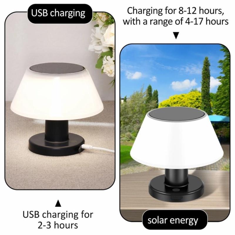 Versatile indoor–outdoor solar table light crafted from durable ABS + PC, featuring smart dusk-to-dawn control, a high-capacity 2200 mAh battery and four dimmable settings—all in a compact, cable-free design that fits lifestyles.