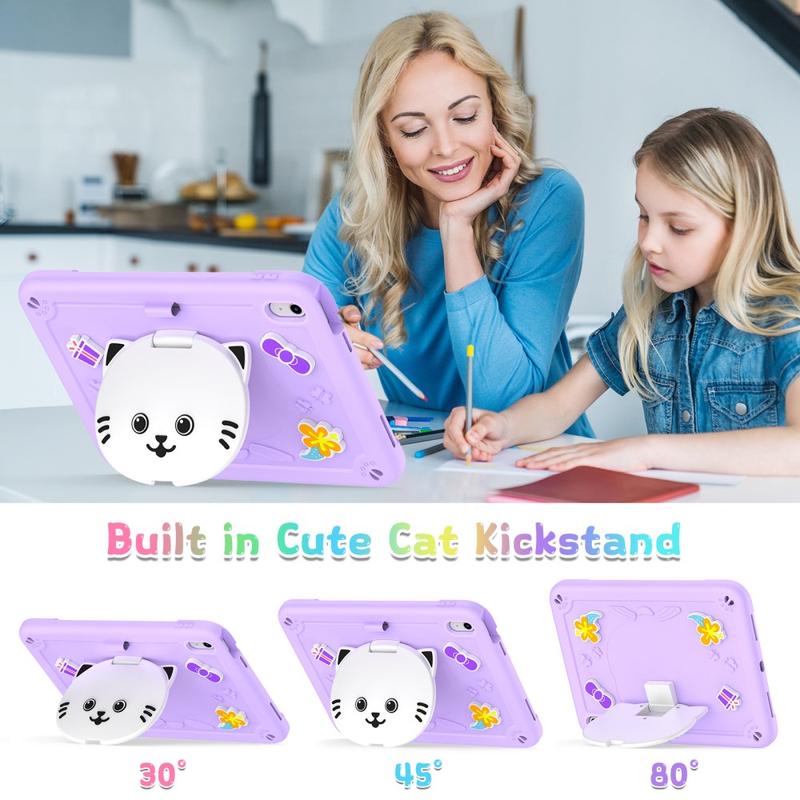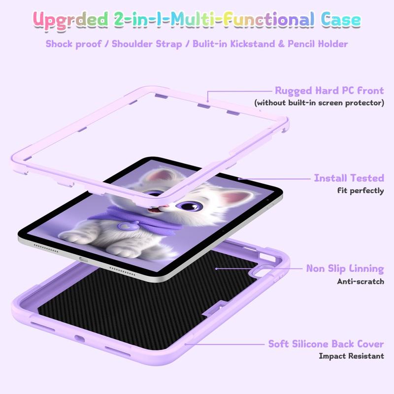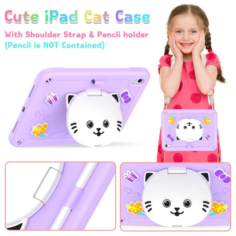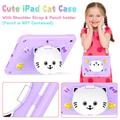 Cute Cat Hybrid Case with Kickstand, Shoulder Strap & Stylus Holder for iPad (2022), iPad (2025)