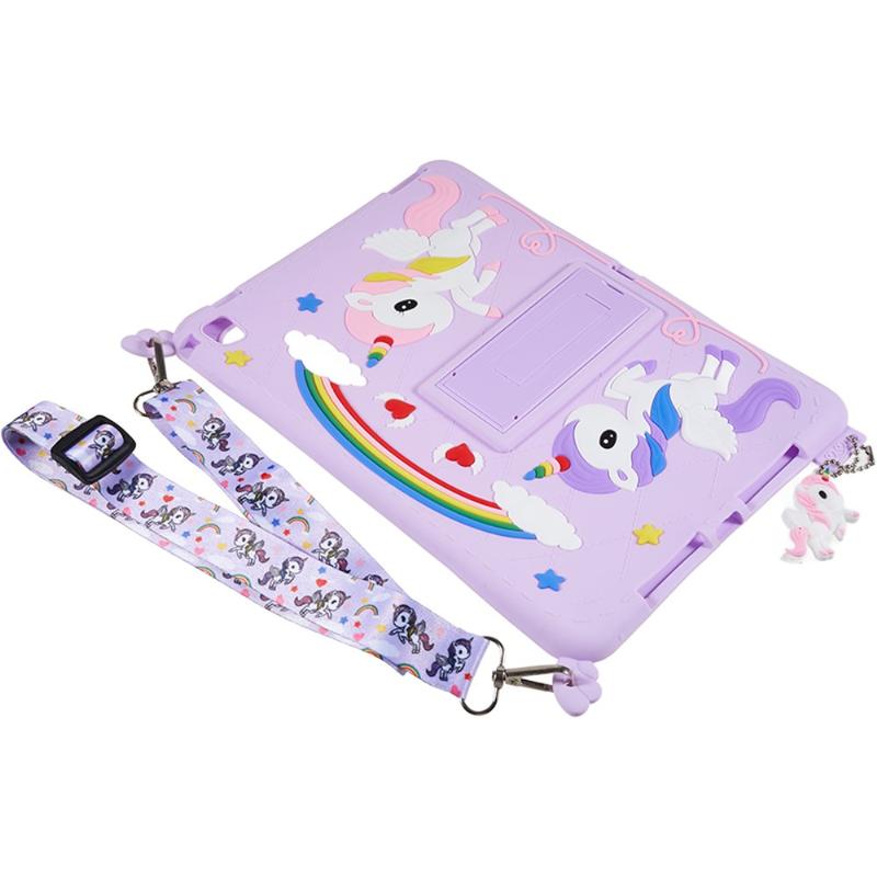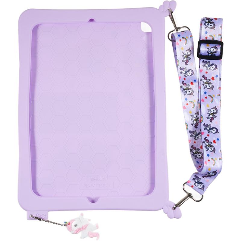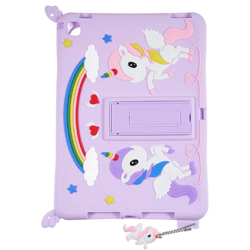 iPad 9.7 2017/2018, iPad Air, Air 2 Cute Unicorn Case with Kickstand and Strap - Purple