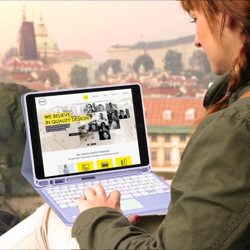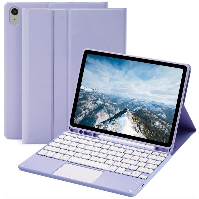 Enhance your iPad Air 11 2026/2025/2024, iPad Air 2022/2020 with the Bluetooth keyboard case, a multifunctional 2-in-1 accessory that combines protection, productivity, and style. Crafted from premium polyrethane, this sleek case provides full protection against scratches, shocks, and fingerprints while maintaining a professional look. The Bluetooth keyboard connects wirelessly for smooth, responsive typing, while the integrated touchpad supports multi-gesture control for effortless navigation. Featuring a backlit keyboard, you can type comfortably even in low-light environments. The built-in adjustable stand offers an ergonomic viewing angle, making it perfect for typing, streaming, or reading. Designed for business, travel, or everyday use, this keyboard case transforms your tablet into a portable workstation.