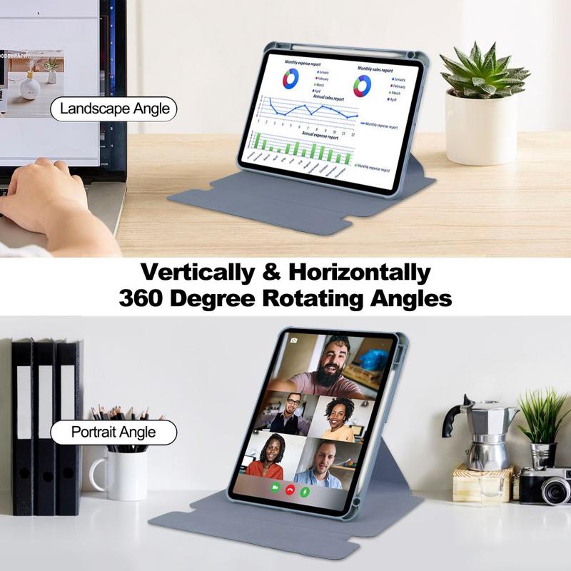 Rotating tablet cases rose to popularity as device screens became larger and more indispensable for everyday tasks. The 360° swivel provides ergonomic advantages, helping you achieve the ideal angle for viewing and typing. Additionally, this design minimizes neck strain by letting you position the screen at the most comfortable height and orientation, enhancing your overall tablet experience.