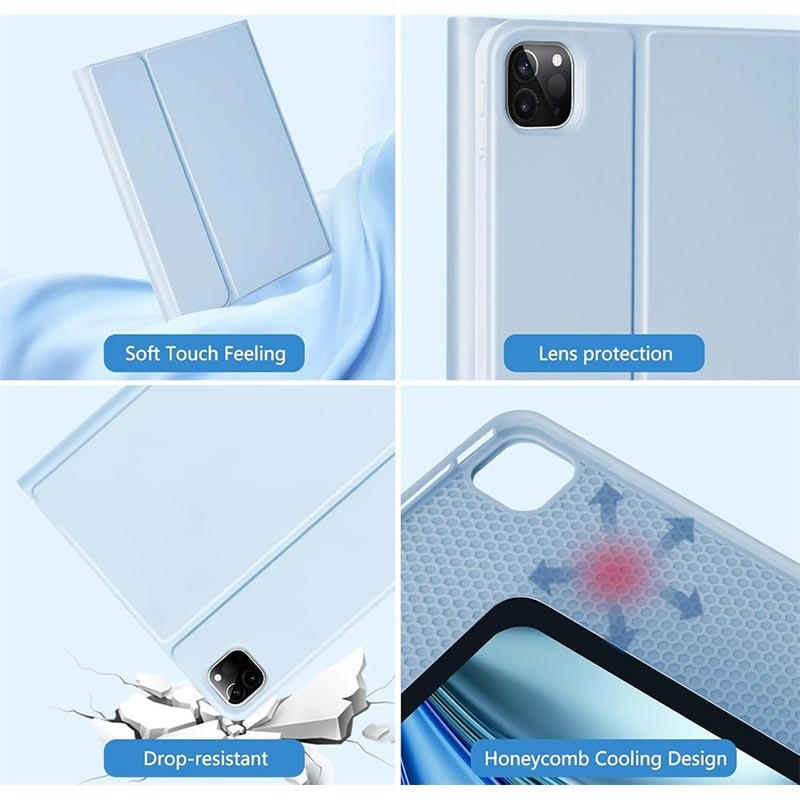 Enhance your iPad Air 13 2026/2025/2024, iPad Pro 12.9 2022/2021/2020/2018 with the Bluetooth keyboard case, a multifunctional 2-in-1 accessory that combines protection, productivity, and style. Crafted from premium polyrethane, this sleek case provides full protection against scratches, shocks, and fingerprints while maintaining a professional look. The Bluetooth keyboard connects wirelessly for smooth, responsive typing, while the integrated touchpad supports multi-gesture control for effortless navigation. Featuring a backlit keyboard, you can type comfortably even in low-light environments. The built-in adjustable stand offers an ergonomic viewing angle, making it perfect for typing, streaming, or reading. Designed for business, travel, or everyday use, this keyboard case transforms your tablet into a portable workstation.