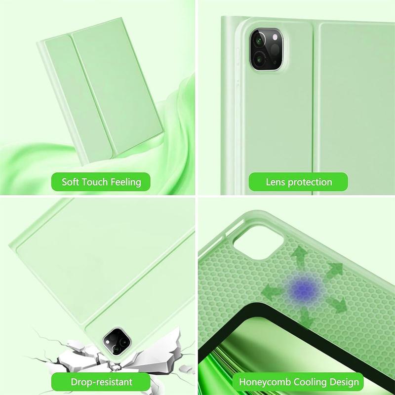Enhance your iPad Air 13 2026/2025/2024, iPad Pro 12.9 2022/2021/2020/2018 with the Bluetooth keyboard case, a multifunctional 2-in-1 accessory that combines protection, productivity, and style. Crafted from premium polyrethane, this sleek case provides full protection against scratches, shocks, and fingerprints while maintaining a professional look. The Bluetooth keyboard connects wirelessly for smooth, responsive typing, while the integrated touchpad supports multi-gesture control for effortless navigation. Featuring a backlit keyboard, you can type comfortably even in low-light environments. The built-in adjustable stand offers an ergonomic viewing angle, making it perfect for typing, streaming, or reading. Designed for business, travel, or everyday use, this keyboard case transforms your tablet into a portable workstation.