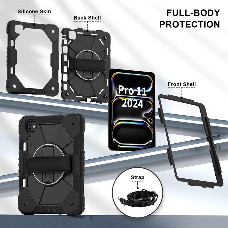 Heavy Duty 360 Rotating Case with Hand & Shoulder Strap for iPad Pro 11 (2024), iPad Pro 11 (2025)