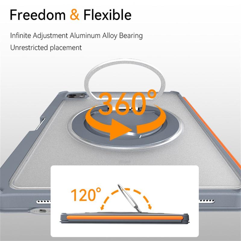 - 360° Rotating Stand – Equipped with a reinforced aluminum alloy hinge, this stand offers smooth 360° rotation and multiple stable viewing angles - ideal for typing, sketching, or video calls.