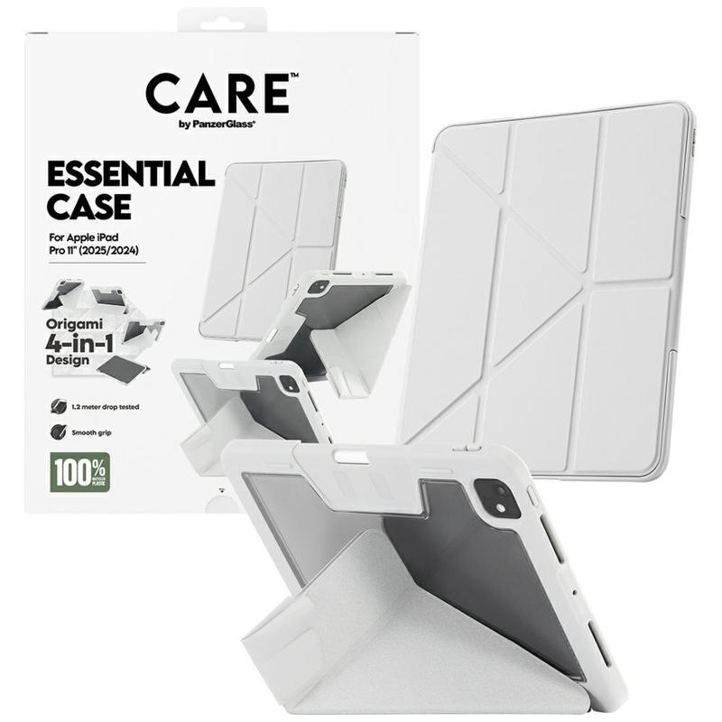 The CARE by PanzerGlass Essential case is designed to give your iPad Pro 11 (2024), iPad Pro 11 (2025) complete protection, smart functionality and a premium feel. Its innovative origami-style 4-in-1 folding cover makes it easy to place your iPad at the perfect angle for watching movies, working, reading or FaceTiming. Whether you're at home, in the office or on the go, this versatile stand adapts to every moment.