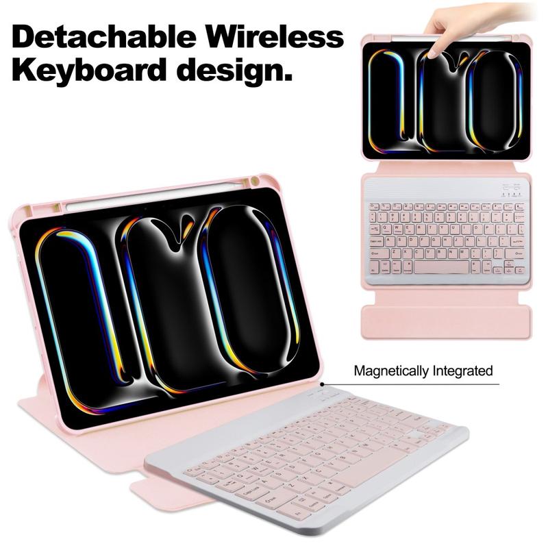 Experience elevated convenience and protection for your iPad Pro 11 2024/2025. This versatile case features a 360-degree rotating stand, offering both landscape and portrait display options for effortless multitasking. Crafted from a blend of PU leather and acrylic, it provides durable scratch and impact resistance while maintaining a sleek, modern look. The integrated keyboard enhances productivity on the go, making it a top choice for students, professionals, and everyday users alike.