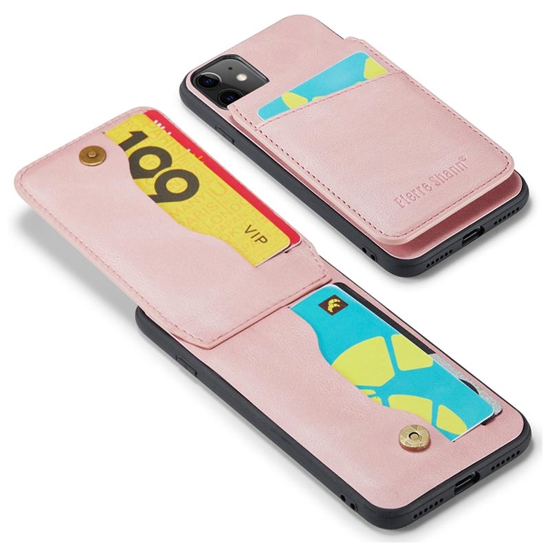 Fierre Shann Coated Hybrid Case with Card Holder and Stand for iPhone 11 - RFID Protection