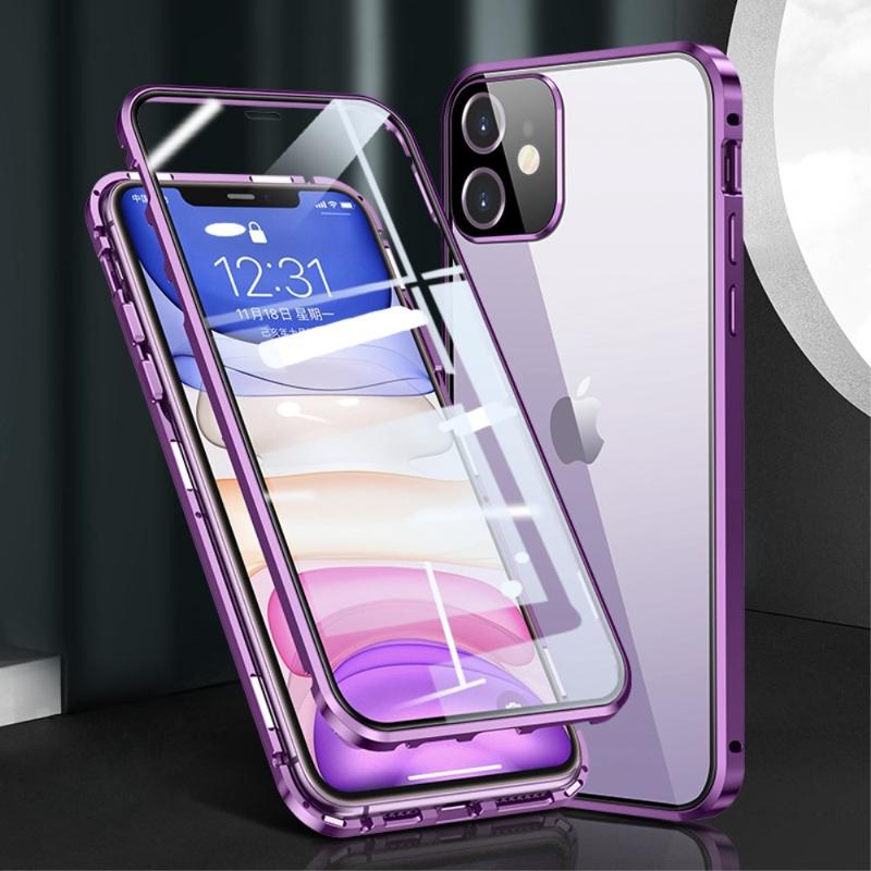 Muti-Color Anti-Scratch Magnetic Installation Metal Frame + Tempered Glass Full Covering Phone Cover for iPhone 11 6.1 inch