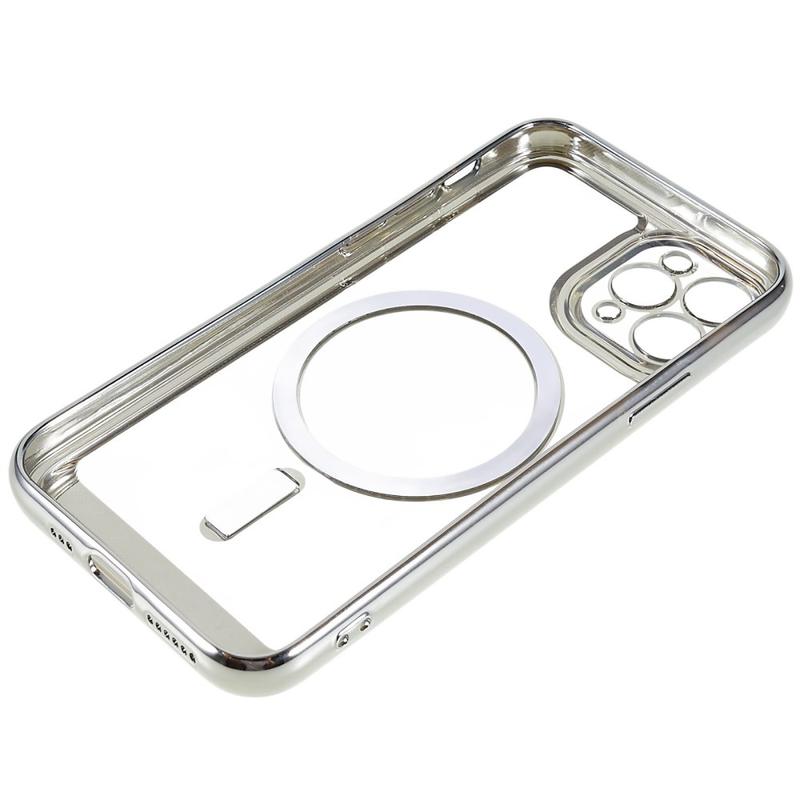 Enhance your iPhone 11 Pro Max with this electroplating magnetic TPU phone case, designed to preserve the device’s sleek aesthetic while providing robust everyday protection. Its crystal-clear design showcases your phone’s original style, complemented by a distinctive metallic edging for a polished finish. With support for magnetic wireless charging and dedicated camera protection, this case excels in both functionality and modern appeal.