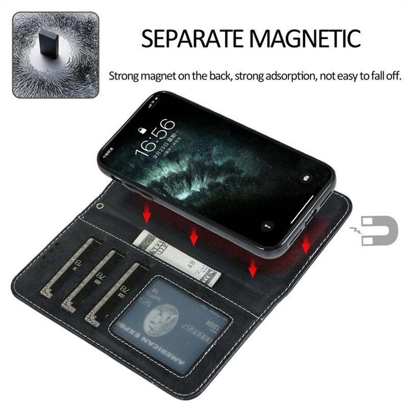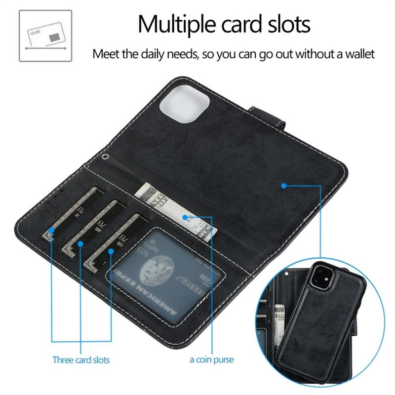 Vintage 2-in-1 Wallet Case with Removable Magnetic Cover for iPhone 11
