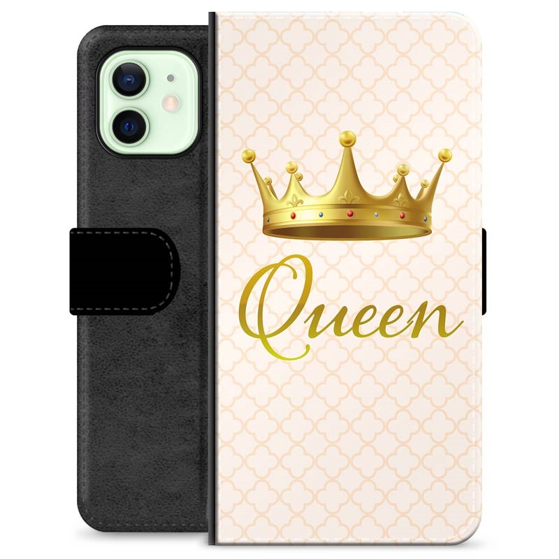 The iPhone 12 Premium Wallet Case titled "Queen" is a sophisticated and chic accessory designed to offer both protection and style to your smartphone. This case features a durable, black faux leather exterior that provides a comfortable grip and shields your phone from scratches, impacts, and daily wear and tear.
