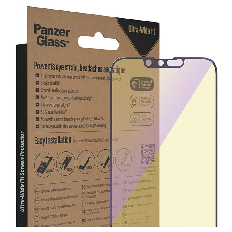 - PanzerGlass Ultra-Wide Anti-blue light screen protector specifically designed for iPhone 13, iPhone 13 Pro, and iPhone 14