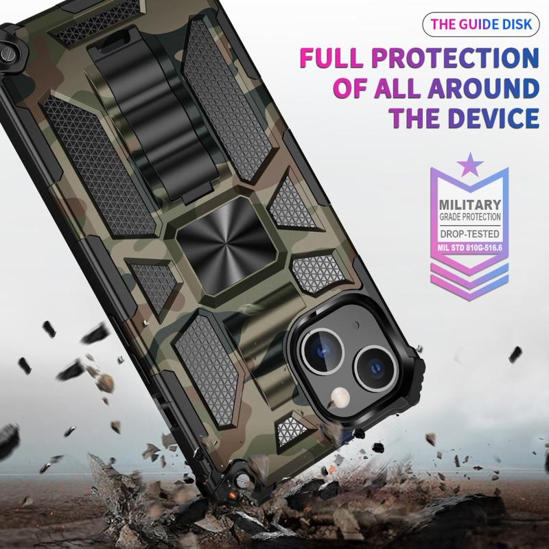 • Camouflage Design Hybrid Case with Kickstand for iPhone 13