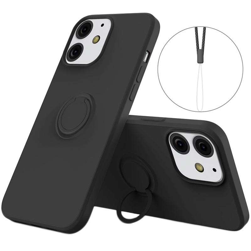 Liquid Silicone Case with Ring Holder for iPhone 13 Mini - with Strap