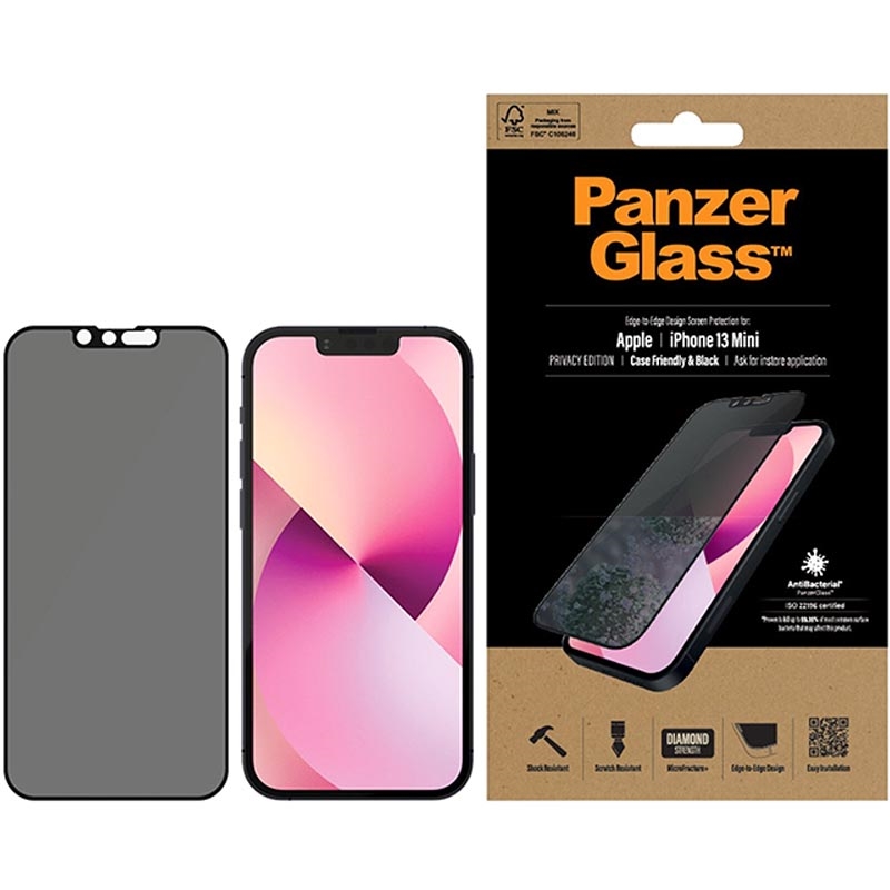 PanzerGlass Privacy Case Friendly Tempered Glass Screen Protector for iPhone 13 Mini