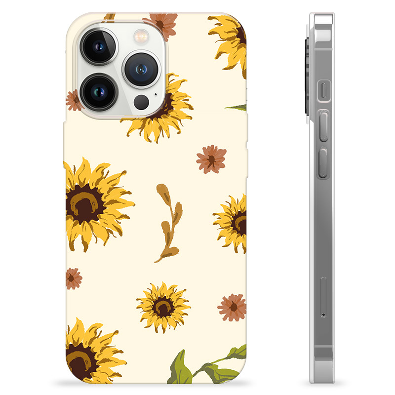 The iPhone 13 Pro TPU Case with a Sunflower design is a stylish and durable phone cover made to protect your device while adding a touch of nature-inspired aesthetics. This case features a beautiful pattern of sunflowers in full bloom, set against a light background, creating a vibrant and eye-catching look. The sunflower motif adds a cheerful and summer-like feel to your phone.