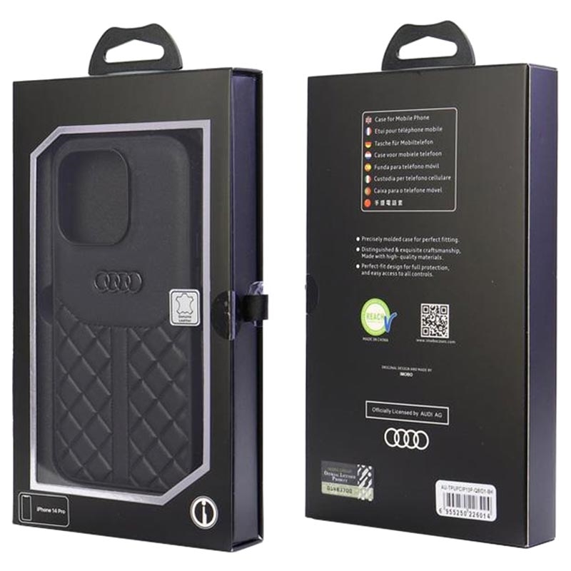 The Audi elegance and premium quality make this leather coated case perfect for your iPhone 13, iPhone 13 Pro. This stylish cover is crafted from flexible TPU material, coated with the finest genuine leather that is embossed with geometric patterns and the Audi logo. In that way, your iPhone 13, iPhone 13 Pro gets a luxurious design, reliable protection, and secure grip.