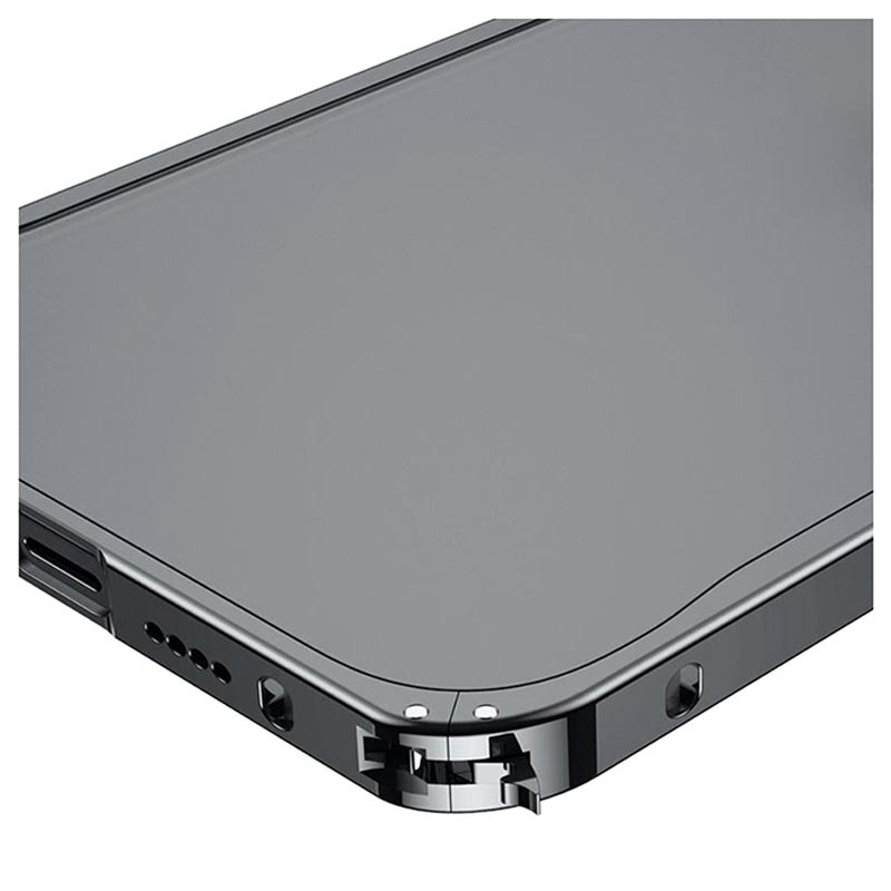 Get the ultimate protection for your iPhone 13 Pro with this incredible metal bumper with plastic back. This low-profile protective case won't add unnecessary bulk or weight to your iPhone 13 Pro, while the transparent back made of plastic won't hide the perfect design of your device. The matte reinforced metal frame features a convenient buckle on its corner that allows you to install it in just a few seconds.