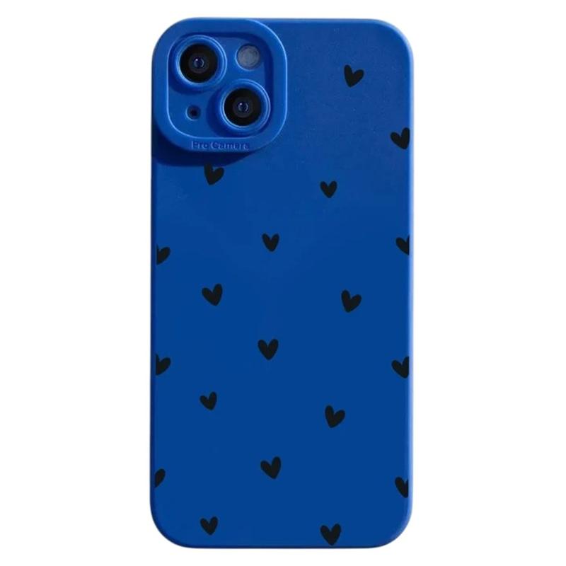 iPhone 14 Heart Pattern Slim TPU Case - Blue / Black