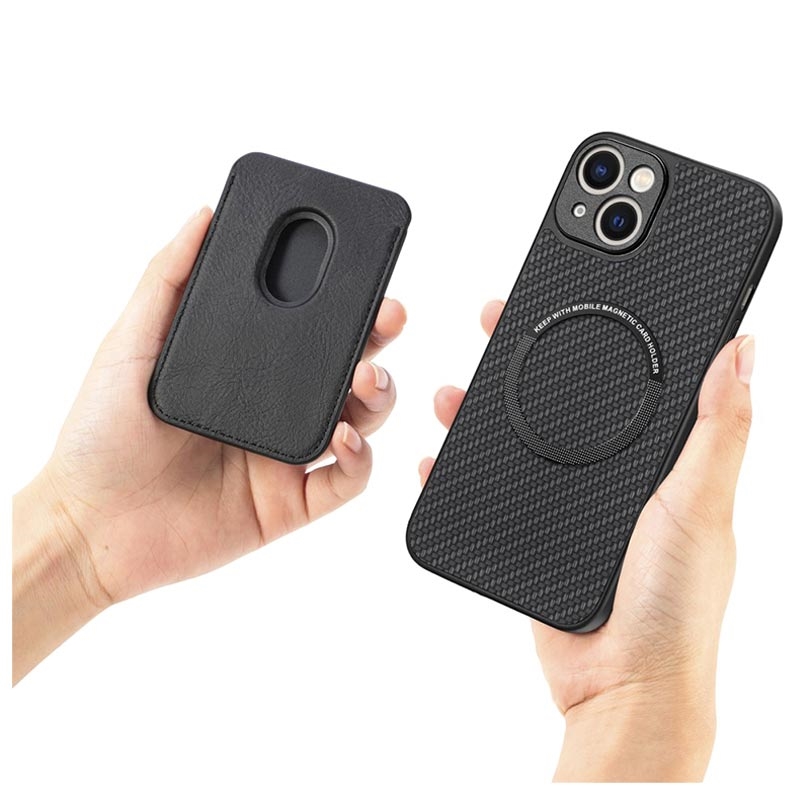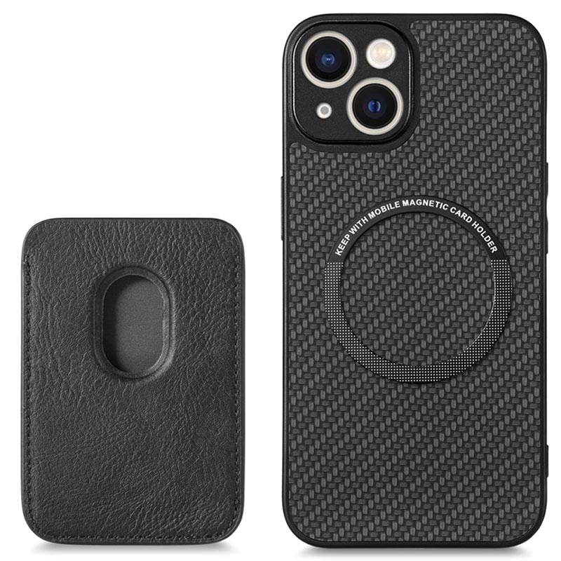 Magnetic Case with Card Holder for iPhone 14 - Carbon Fiber