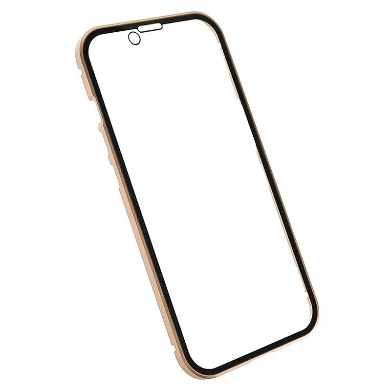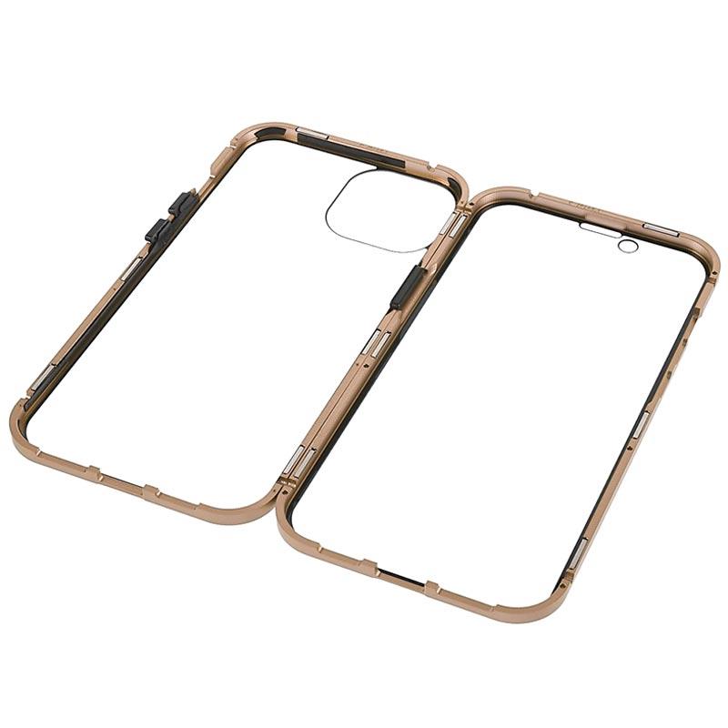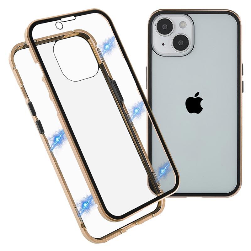 - iPhone 14 case with a metal frame and tempered glass for back and front