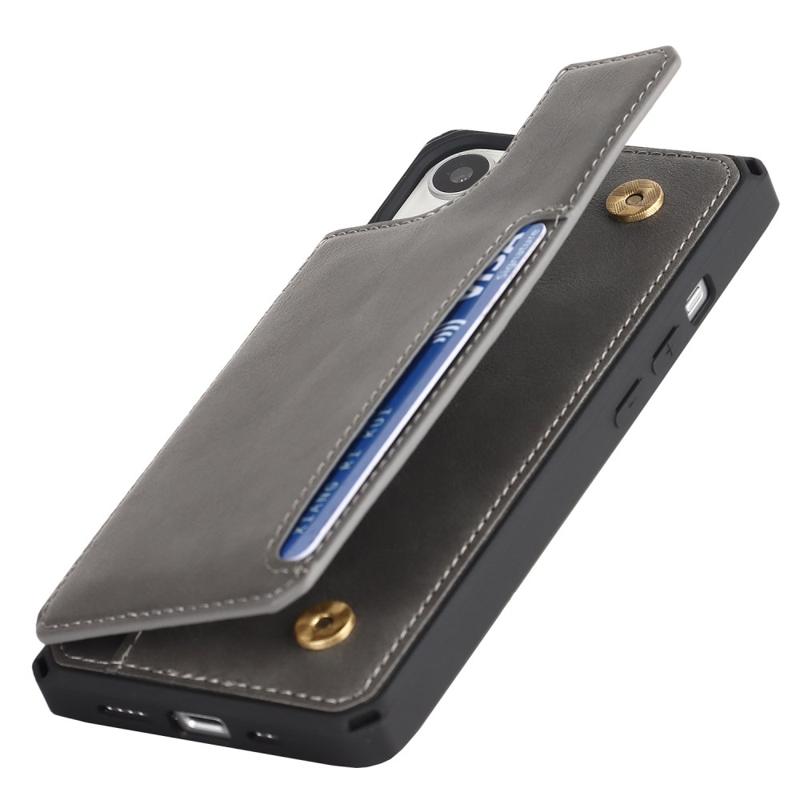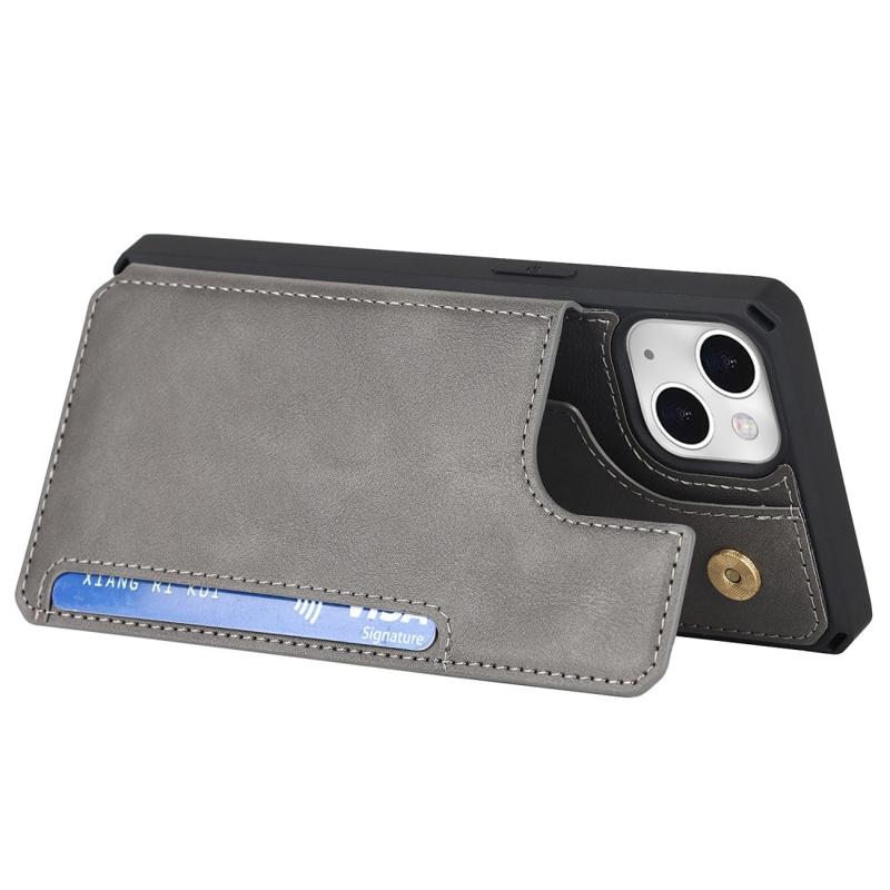 • For iPhone 14 Plus Kickstand Function Magnetic Snap Button Phone Cover Shell Anti-scratch PU Leather+TPU Phone Case with Card Slot and Strap - Made of TPU+PU leather materials, wear-resistant and durable to use - Card slots design, convenient to store ID/credit cards and money - The card holder can act as a kickstand for hands-free viewing - The raised bezels are higher than the screen level to protect your screen from scratches - The magnetic snap buttons keep the cash money and cards safe and prevent accidentally dropping - Precise cutouts ensure full access to ports and function buttons, speakers and camera - Provides protection against daily wear and tear, scratches, marks and scrapes - With a handy strap, easy to carry