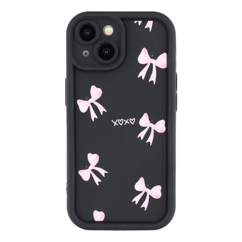iPhone 14 Plus Stylish Shockproof TPU Case with Raised Edges - Black / Bow