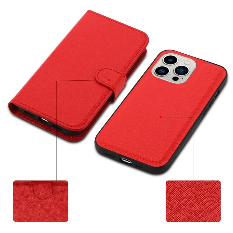 For iPhone 14 Pro Detachable TPU Back Case Cross Texture PU Leather Drop-proof Cover Flip Stand Wallet Shell