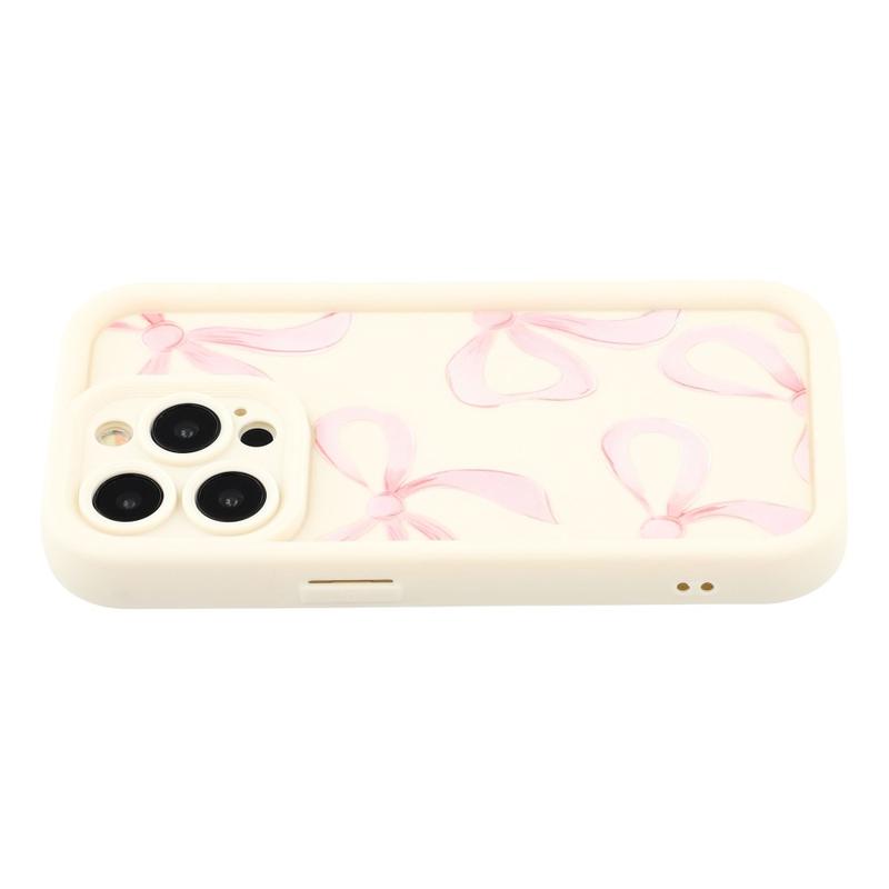 iPhone 14 Pro Max Stylish Shockproof TPU Case with Raised Edges - White / Big Bow