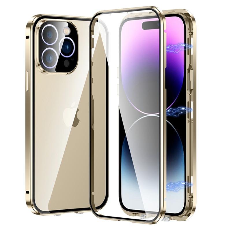 This uniquely designed case features a magnetic metal frame and clear tempered glass for the back and front to provide superior protection for your iPhone 14 Pro Max. Although it offers first-class protection for your phone, the magnetic case with tempered glass doesn't hide the beauty of your iPhone 14 Pro Max.