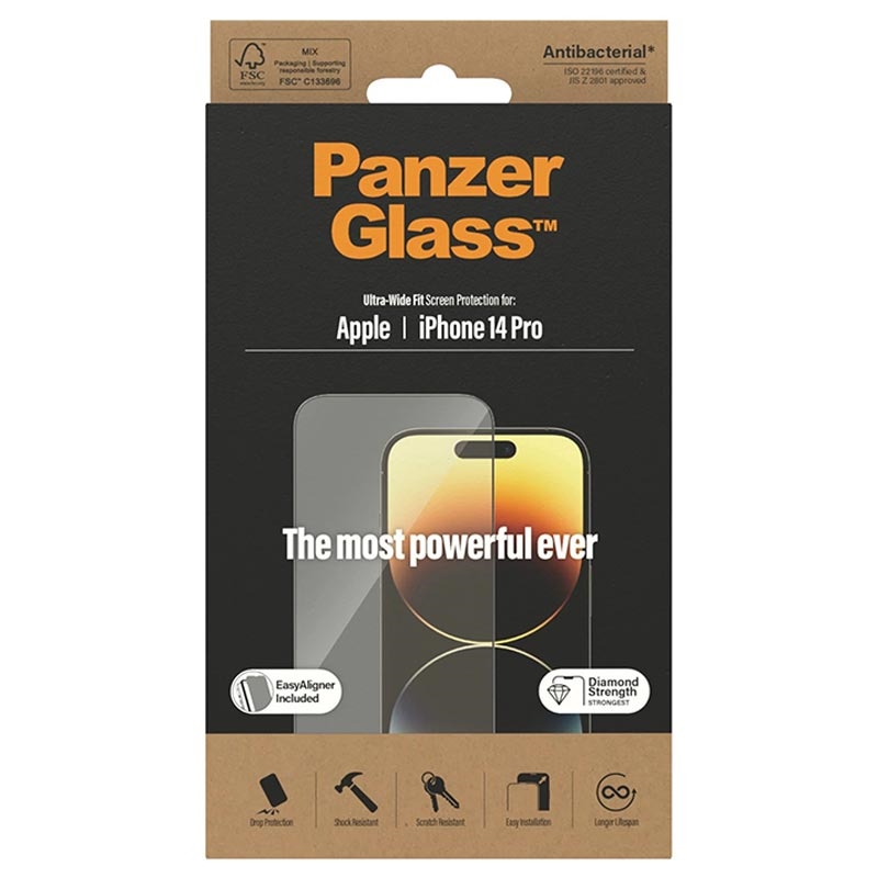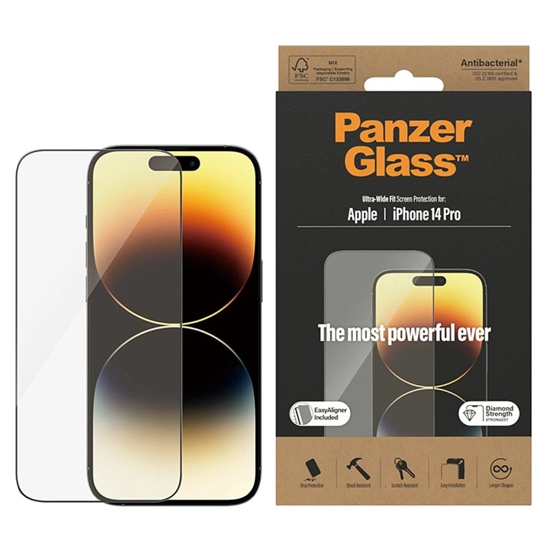 PanzerGlass Ultra-Wide Fit EasyAligner AntiBacterial Tempered Glass Screen Protector for iPhone 14 Pro
