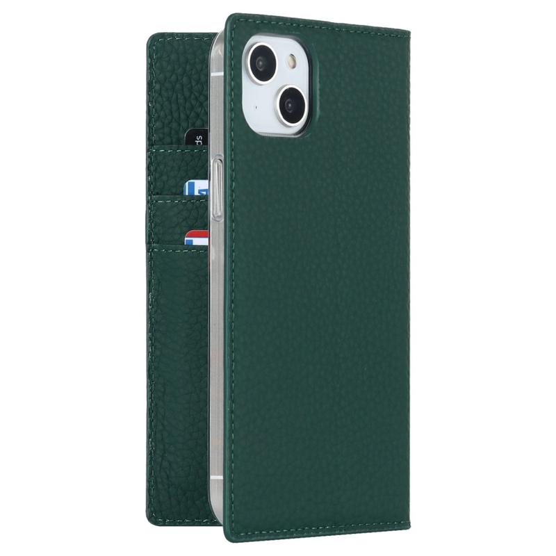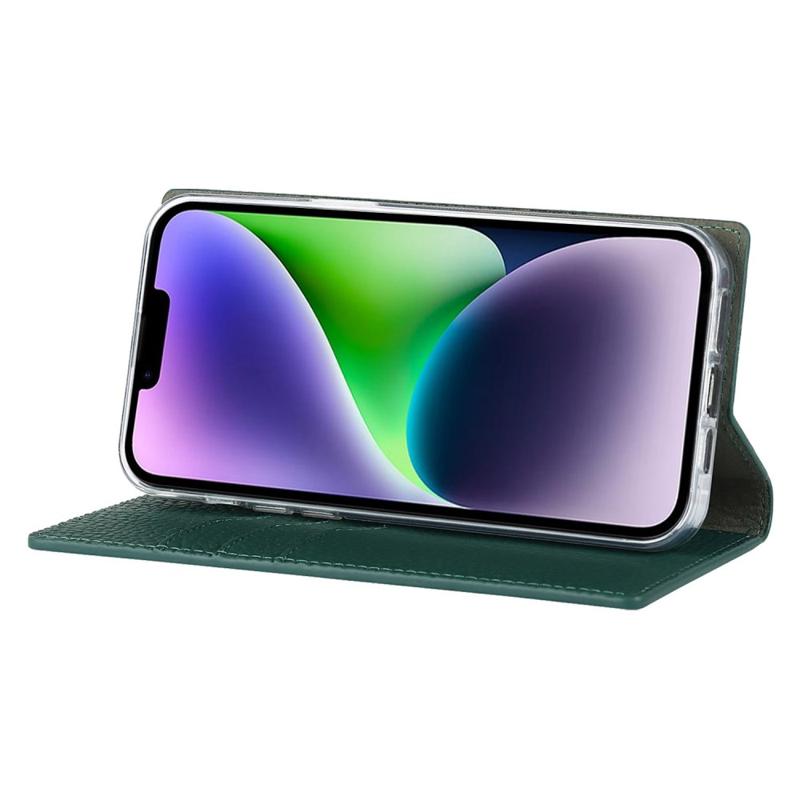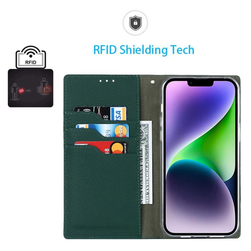 For iPhone 14 RFID Blocking Card Slot Wallet Phone Case Litchi Texture Genuine Leather Stand Auto-absorbed Protective Cover