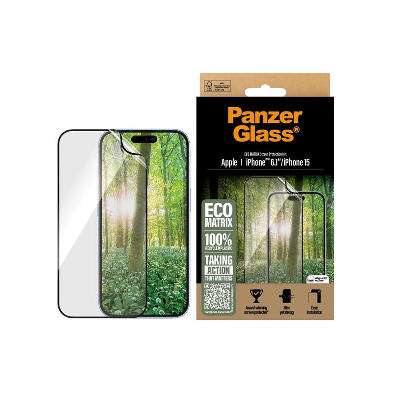 PanzerGlass Eco Matrix Ultra-Wide Fit Screen Protector with EasyAligner for iPhone 15, iPhone 16 - 100% Recycled