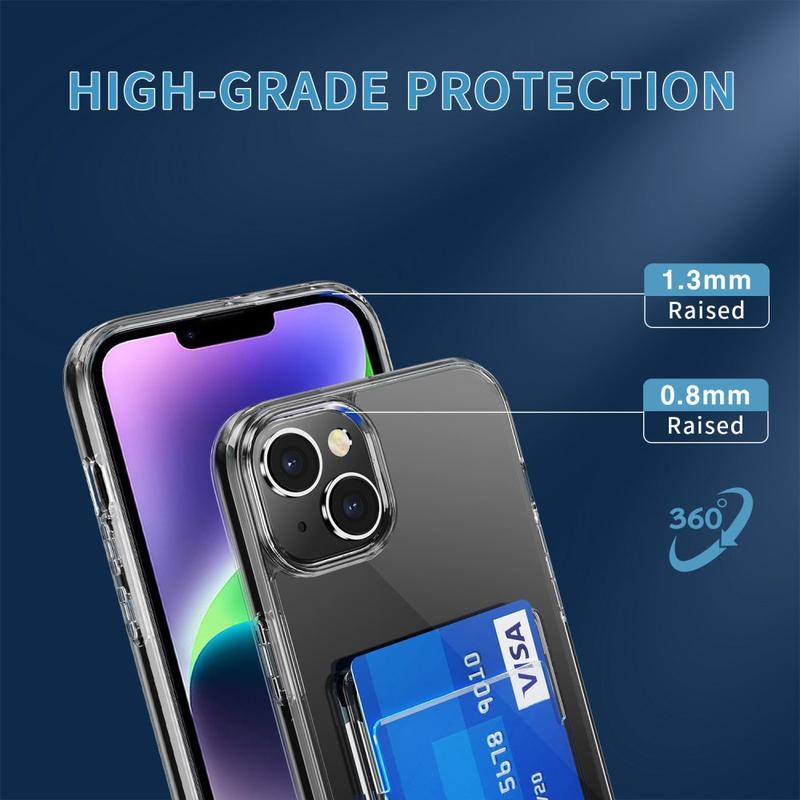 This hybrid case for iPhone 15 offers a thoughtful array of features, showcasing your iPhone 15's original look without any interference. Comprehensive protection, and excellent shock-resistant properties - this means your iPhone 15 can handle unexpected bumps and drops. Also, the built-in card holder at the backside is convenient for storing two of your essential cards, so you can always have them available whenever you need them.