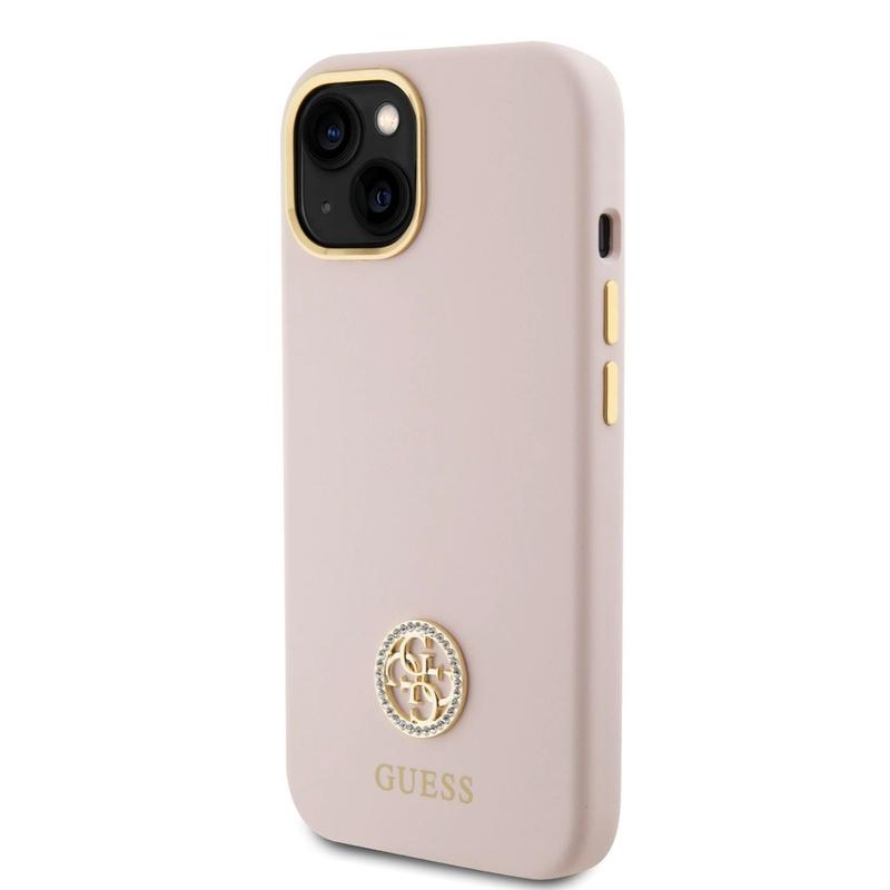 Guess 4G Strass Metal Logo Liquid Silicone Case for iPhone 15