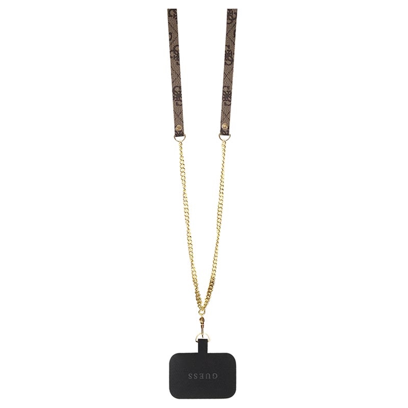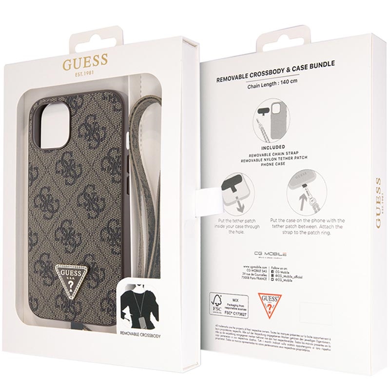• Guess 4G Strass Triangle Metal Logo Case with Crossbody Strap for iPhone 15