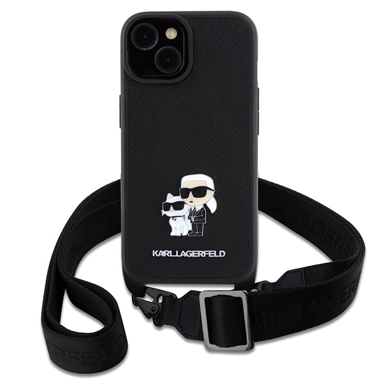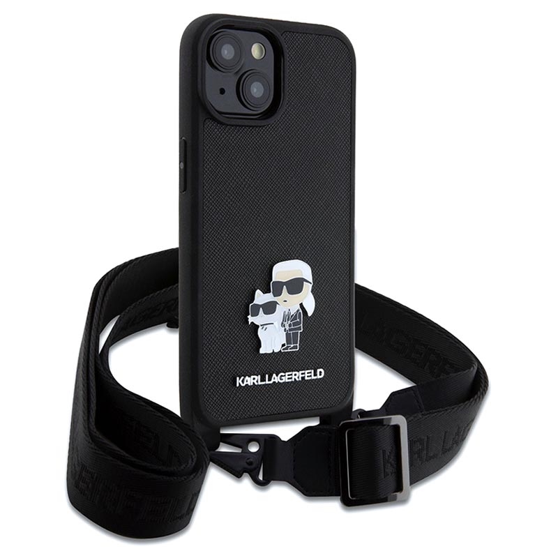 - Karl Lagerfeld Saffiano Crossbody Metal Karl & Choupette case for iPhone 15