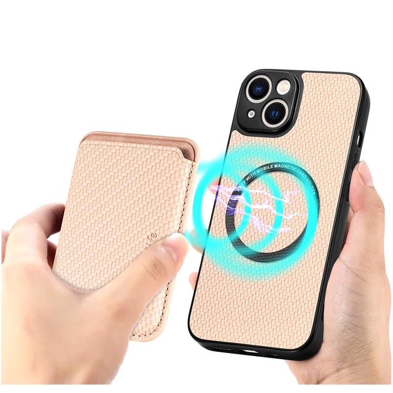 Magnetic Case with Card Holder for iPhone 15 - Carbon Fiber