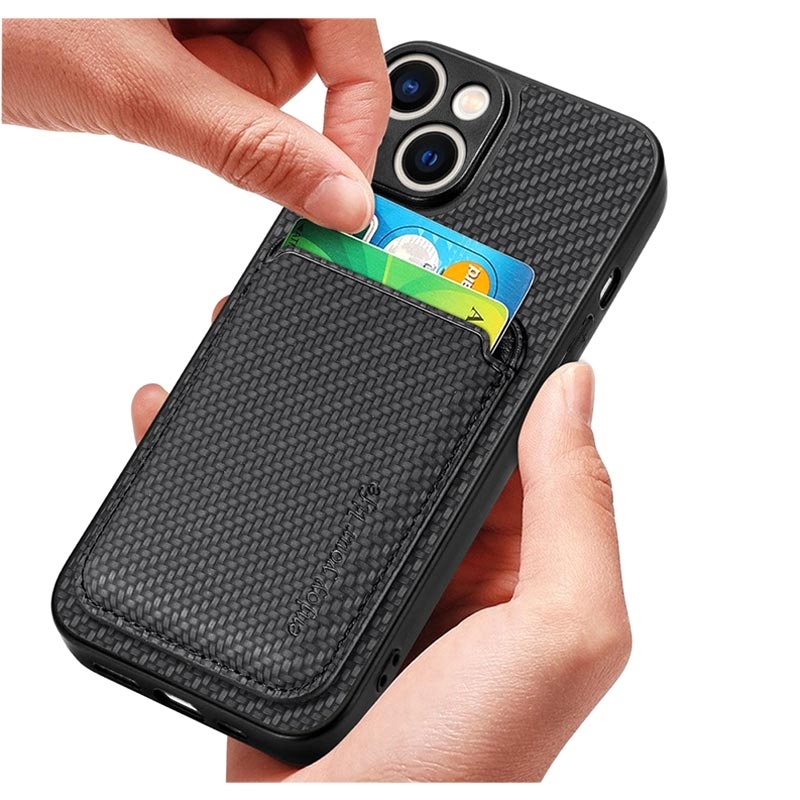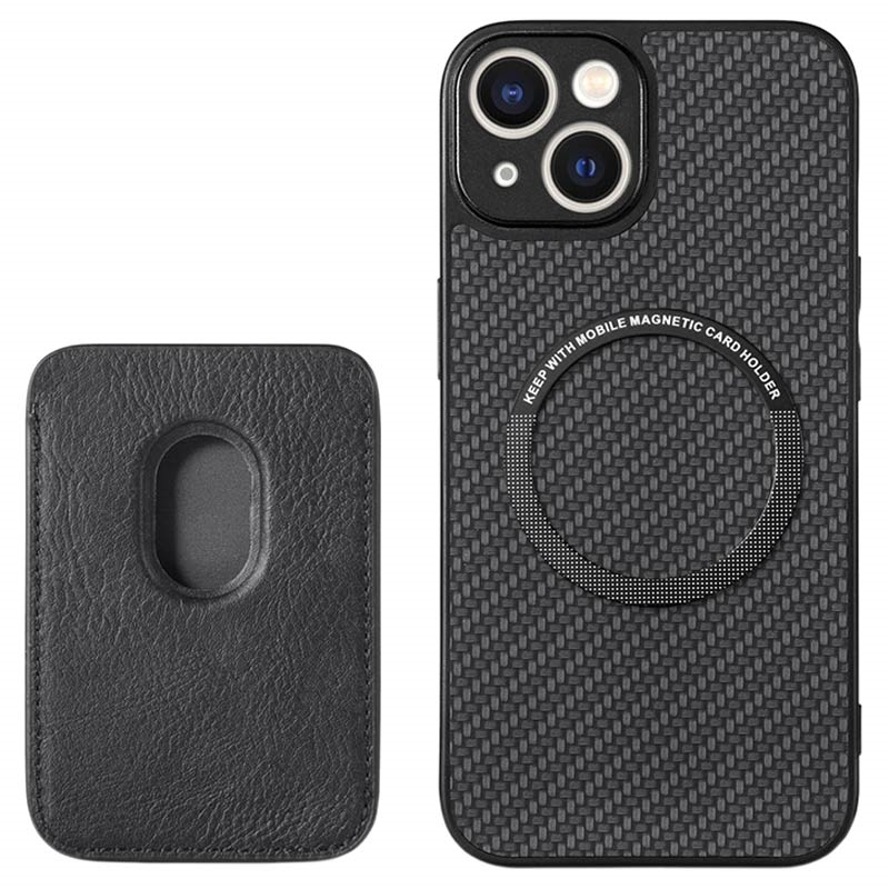 Magnetic Case with Card Holder for iPhone 15 - Carbon Fiber