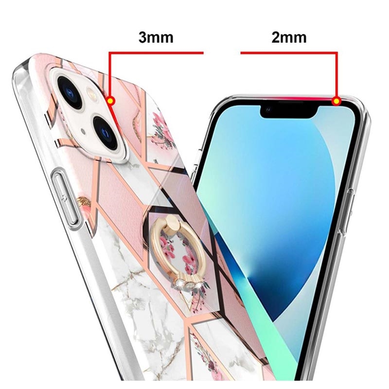 Meet the ultimate fusion of style, functionality, and durability: the Marble Pattern IMD case is the accessory for the iPhone 15 you've been searching for. This flexible case features a rotary ring holder and kickstand for easy one-hand operation and a hands-free viewing experience.